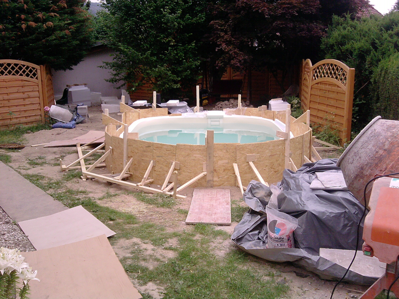 Pool und poolumrandung ist betoniert.